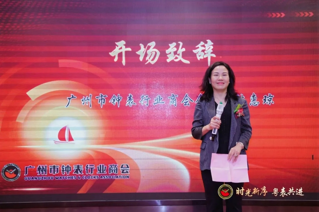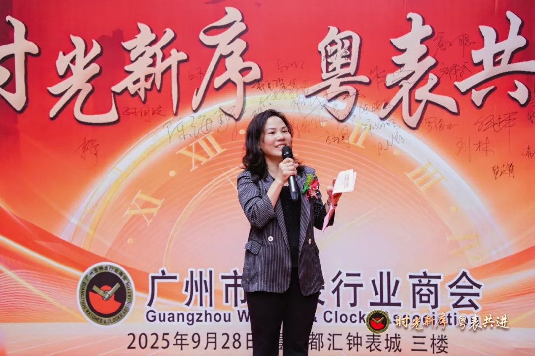 在领导致辞环节,林惠琼会长首先向莅临嘉宾表达热烈欢迎与感谢,并展望商会在新平台上的发展愿景。广州市越秀区工商联党组书记马红民、中国钟表协会副理事长任建平相继致辞,一致肯定商会在推动钟表产业集聚、促进区域经济交流方面所发挥的桥梁作用,并对新址启用与选品中心开业表示热烈祝贺。