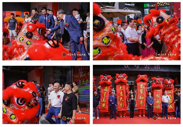 14:30,乔迁揭牌活动在气势恢宏的醒狮表演中正式启动。点睛仪式由中国钟表协会副理事长任建平、会长林惠琼、执行会长金金炼、名誉会长李思源、常务副会长孙同波、壹号都汇钟表城总经理周秋和六人共同完成,寓意“点睛启运,宏图大展”。随后,醒狮依次完成“接天青”“接地青”“接门头青”等环节,分别由多位核心会员接青,象征聚财纳福、事业高升。最后,林惠琼会长接下“门头青”,将吉祥气氛推向高潮。