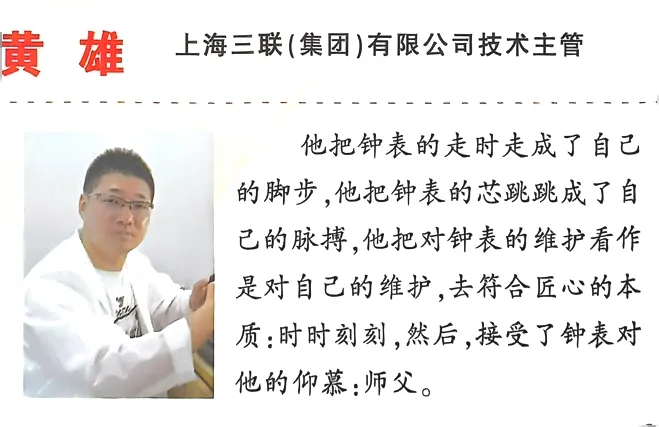 在“上海轻工工匠”选树命名暨颁奖大会上,上海三联集团有限公司(两亨名表维修中心技术主管)黄雄分享了自己在平时名表维修工作中的经验和体会。