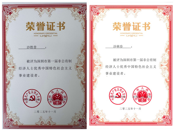 深圳市委市政府表彰!我会沙胜昔和沙林珍荣获“深圳市非公有制经济人士优秀中国特色社会主义事业建设者”称号
