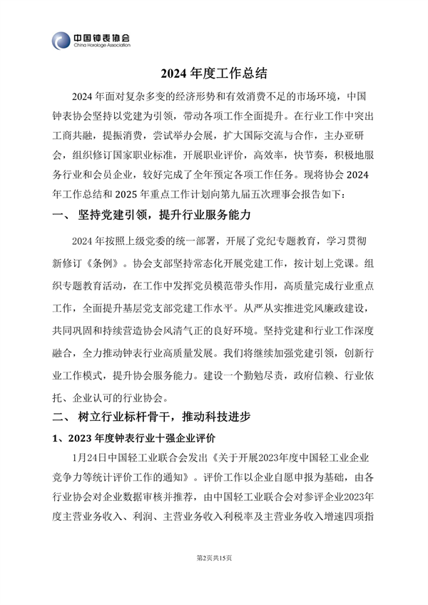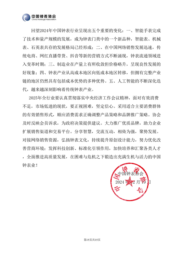 发布时间:2025-01-22 作者:协会秘书处 来源:中国钟表协会