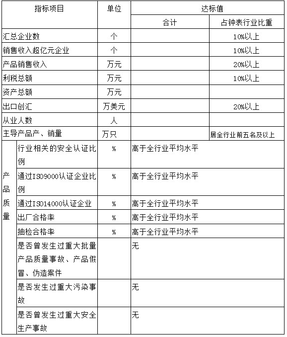 (二)“中国钟表产业基地(之城)”达标评价指标