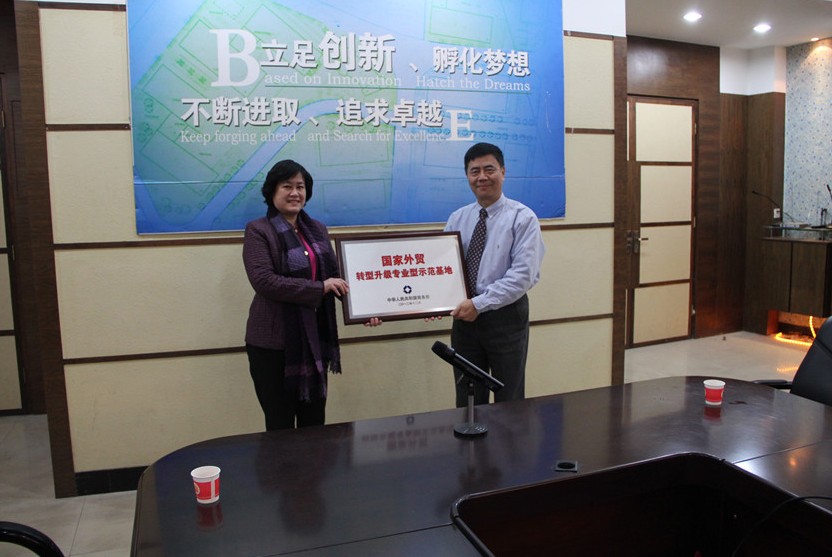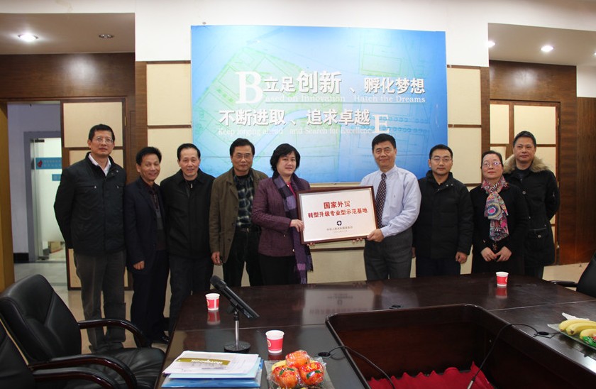 国家外贸转型升级专业型示范基地是国家商务部授予的荣誉称号。2012年12月11日,陈晔副市长率市外经局潘建敏局长、潘啸副局长、省钟表协会会长蒋莘、省钟表协会名誉会长黄训松、协会秘书长陈帆赴京参加答辩,最终,仓山钟表基地从114个参加申报的基地中脱颖而出,成为2012年福州市唯一获此殊荣的产业基地。