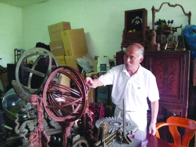 今年6月29日,陈凯歌带着精心制作的水运浑象仪、龙舟香漏、仰仪、地平经纬仪等一批古代天文仪器赶赴深圳,参加在那里举办的中国钟表国际博览会。他的展品吸引了很多媒体关注,但是对陈凯歌“不惜代价”复制的“水运浑象”,却没有几个人愿意停下来多作了解。陈凯歌说,虽然世界上第一台脱离了天文仪器制作而成的“独立时钟”是元代郭守敬在1296年创制的“大明殿灯漏”,但是东汉时期张衡制作的“水运浑象”,则可以称之为“世界第一台水力机械日历时钟”,意义重大。水运浑象在水力的作用下,使布列星辰的浑象球不仅可以自动与天体同步运转,还能够演示并报告时间,现在这台仪器被中国水利博物馆收藏。近年来,为提升中小学生以及市民科学素质,陈凯歌还与相关单位合作,先后在平江少年宫设计国内第一座“时间馆”,在沧浪少年宫建成中国第一座“日晷园”,在沧浪新城第一实验小学建设“天文科普馆”,在香港西贡区设计建成近千平方米的“天文公园”等科普场馆、基地。