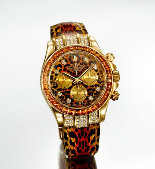 自动上弦机芯,18k黄金,钻石表耳,黄色宝石表圈,计时码,豹纹表盘,钻石字盘,精密时计腕表,型号116598 Saco