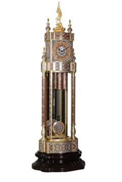 “故宫楼式智能四面钟”是御制钟代表作,在故宫钟表馆珍藏一个多世纪。“美时嘉”围绕着在传承中交融,在交融中创新主题,把传统文化与现代科技相结合,与用钟龙头烟台持久集团合作研发出新款“故宫楼式智能四面钟”,该钟采用珍贵缅甸花梨木,由母钟带四面钟并采用GPS自动校对系统和现代科技的互联网与物联网远程操控技术,成为传统文化与现代技术完美结合的经典之作。